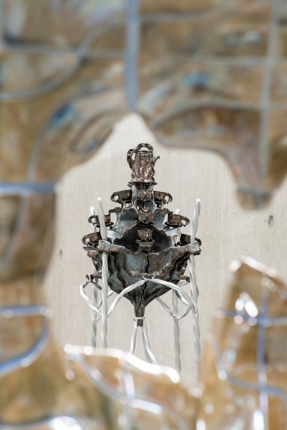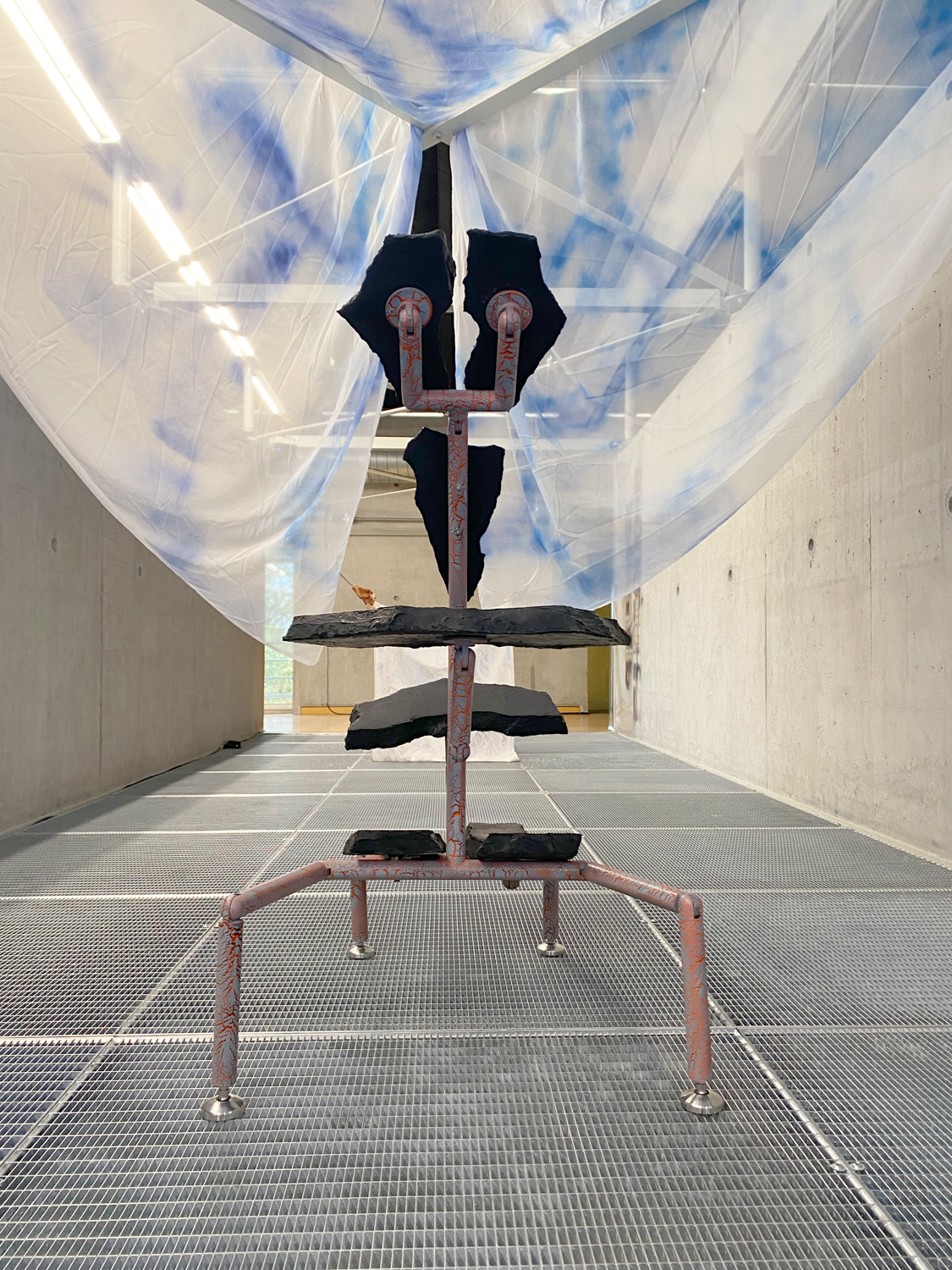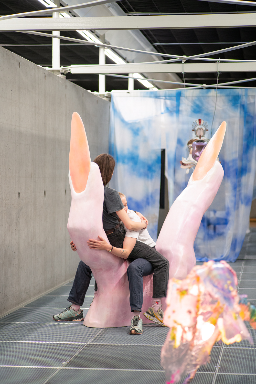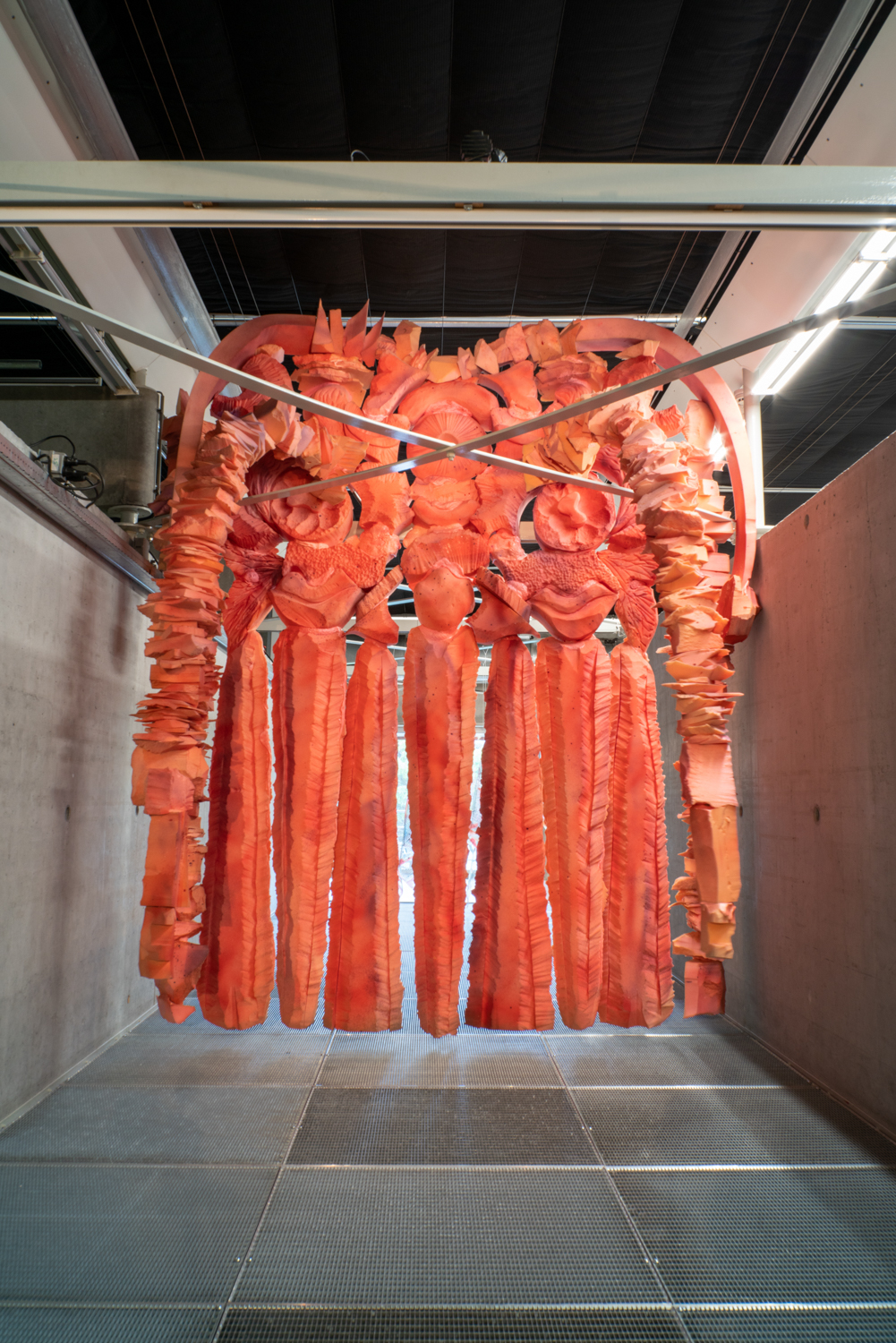 Disorientation happens when our senses slip off the atlas of common knowledge; it is also an invitation to know differently. Without a visual reference like a stable horizon, humans rely on the non-visual senses to re-ground themselves. It Enters Into What We Become (Centre for Disorientation), a new presentation of work by multidisciplinary design collective Morph.Love in Het Nieuwe Instituut’s Gallery 3, is an invitation to lose ourselves inside a total environment. Eighteen members of the ever-evolving international group explore disorientation by creating a looping sequence of multisensory encounters. Arranged as five porous sections that build and double-back on each other to create an exploratory labyrinth, It Enters Into What We Become meditates on a cryptic healing process that never fully makes itself known. From an exploration of how algorithms alchemise emotional expressions into hard cash, to a chilly digital fire that bucks our sensory codex, and a trippy VR voyage through the body, the exhibition extends this sense of disorientation through a sequence of abstracted wellness rituals. It Enters Into What We Become rejects the linear-progressive spatial flow typical of exhibitions, instead choosing to end where it begins. Following the intense virtual yogic foray into a body grotto, viewers are shuttled through an express passage back to the entrance. Here, the supersensory ‘we’ built throughout the different rooms begins to slacken back into an ‘I’: viewers recover from their intense journey before re-entering the world. Conceived as a collaborative transformative process, Morph.Love’s latest presentation reframes disorientation as an eternal state of becoming. (Photos by Donghwan Kam & Koos, Graphics by Lana Arih)