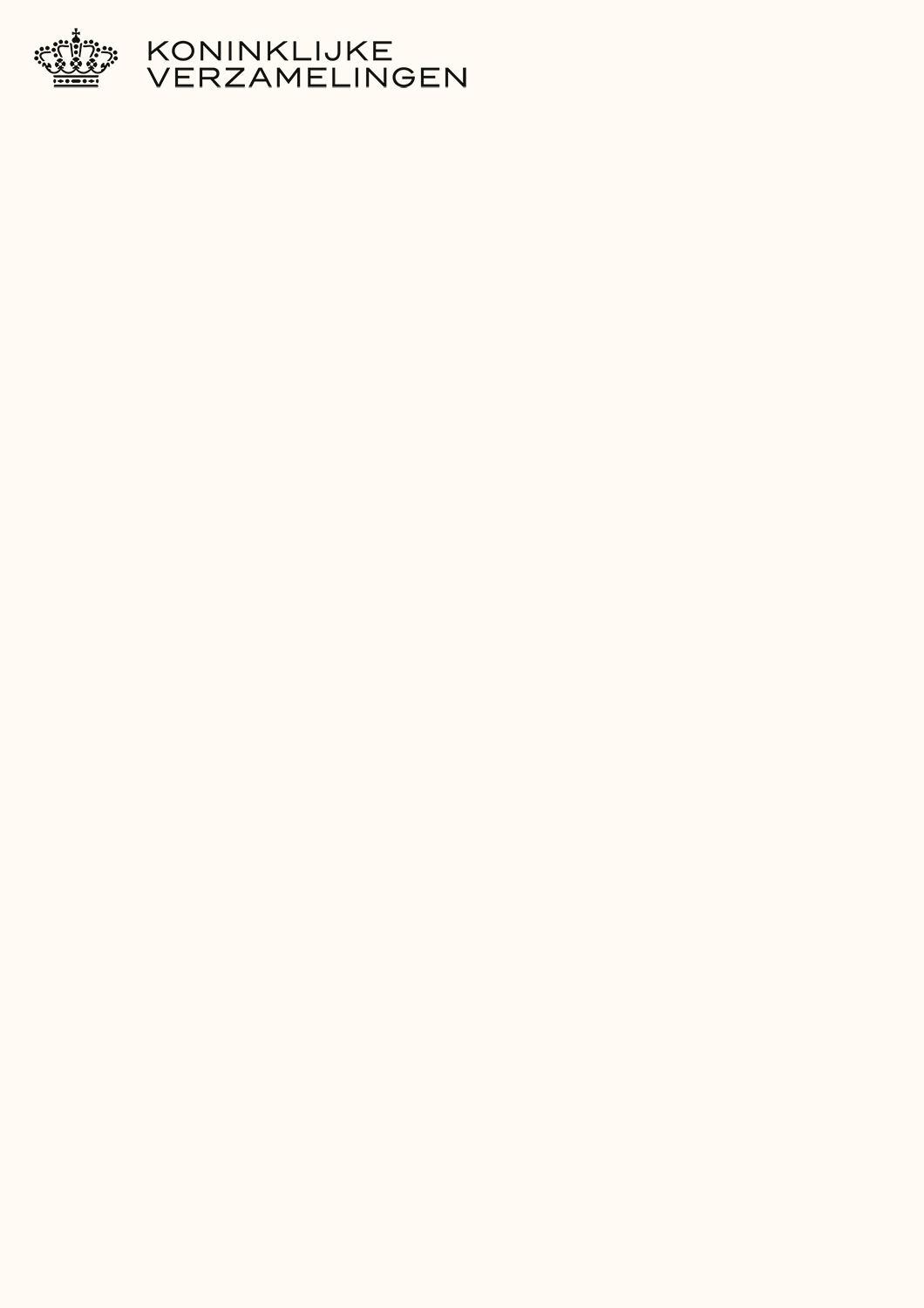 KB15.014 Title: Koninklijke Verzamelingen (2015). Collaborator: Bold Monday (crown re-design and custom typography). Commissioner: Stichting Historische Verzamelingen van het Huis Oranje Nassau. Role: art director + designer.