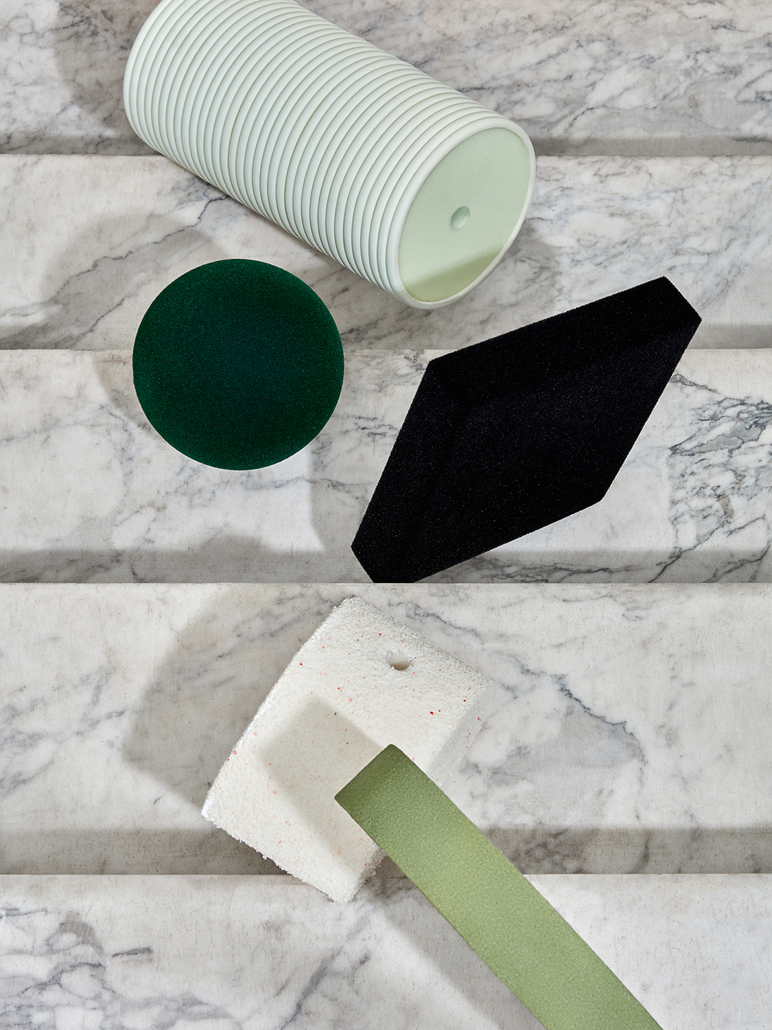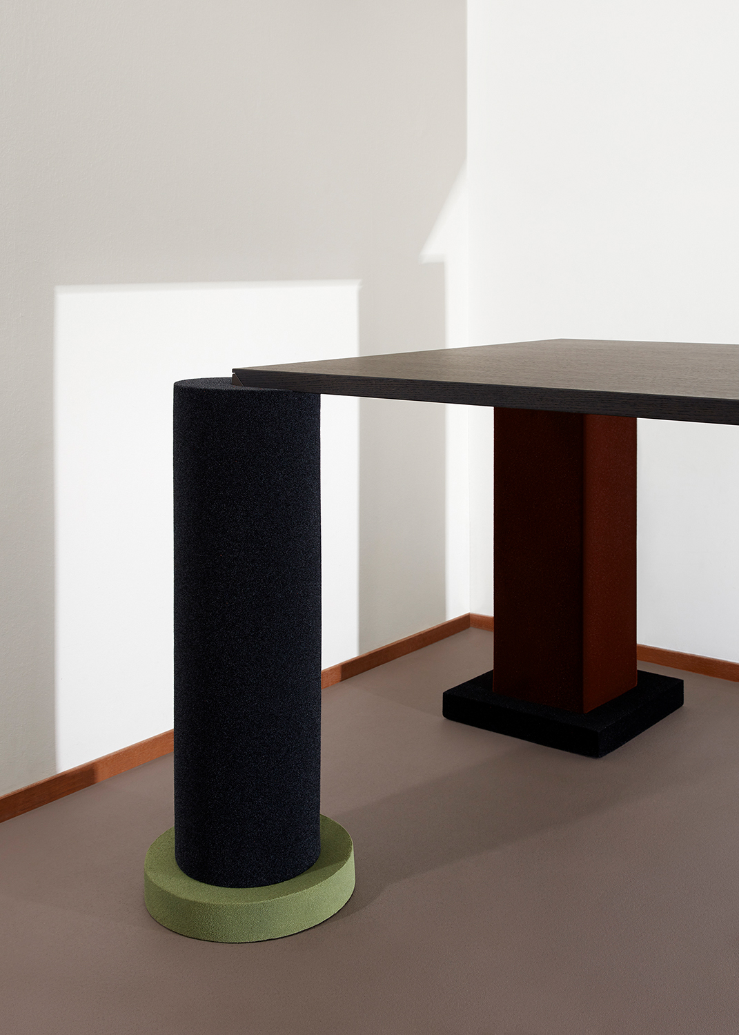 Edge protection became a wide spread phenomenon in young family households. The often preposterous shape of these objects deforms any type of furniture by prioritizing function over aesthetics. Maintaining this overtly functionalist approach, Soft Shell, Hard Core. over exaggerates the act of deformation in a humorous way. The modular system of soft objects can be added to any piece of domestic furniture. (Photography by Lonneke van der Palen)